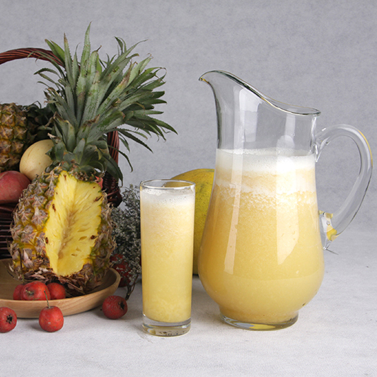 菠蘿汁產品有菠蘿原汁、菠蘿濃縮汁、菠蘿汁飲料等。菠蘿汁飲料較佳的配方為:菠蘿原汁20%~30%,糖13%左右,酸0.5%左右。